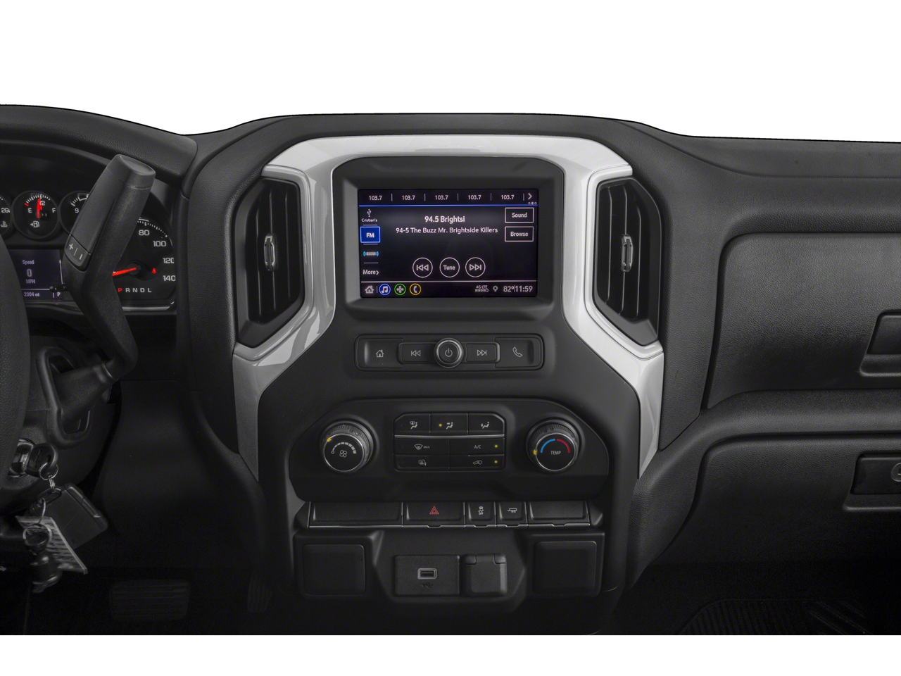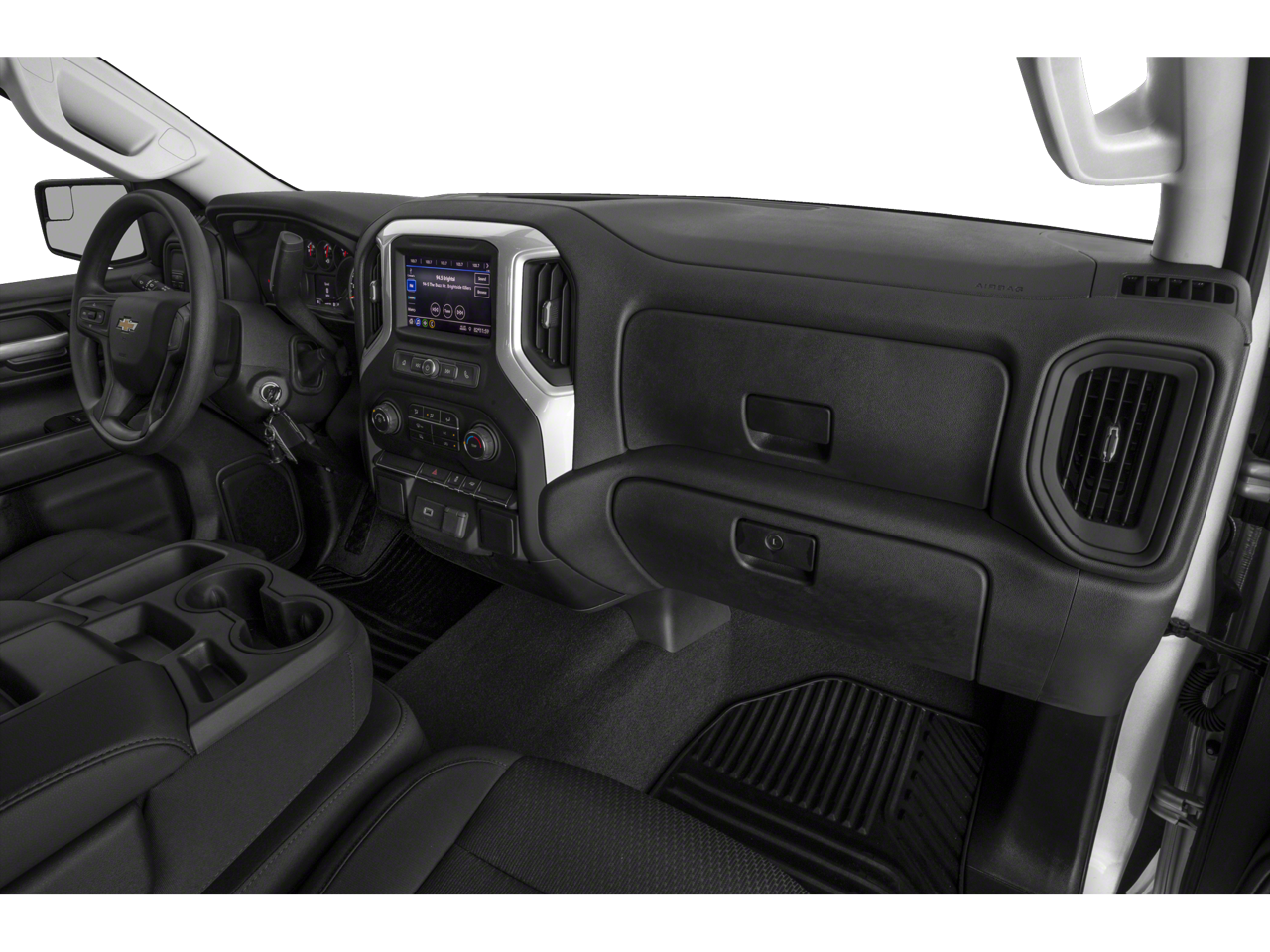 Step inside the Silverado 1500 Custom and you'll be greeted by a spacious and well-appointed interior. The cloth seats provide comfortable seating for up to six passengers, and the 40/20/40 front split bench seat allows for versatile cargo and passenger configurations. The Chevrolet Infotainment 3 system, with its 8-inch touchscreen display, provides seamless connectivity and entertainment, while the 6-speaker audio system delivers crisp, clear sound.